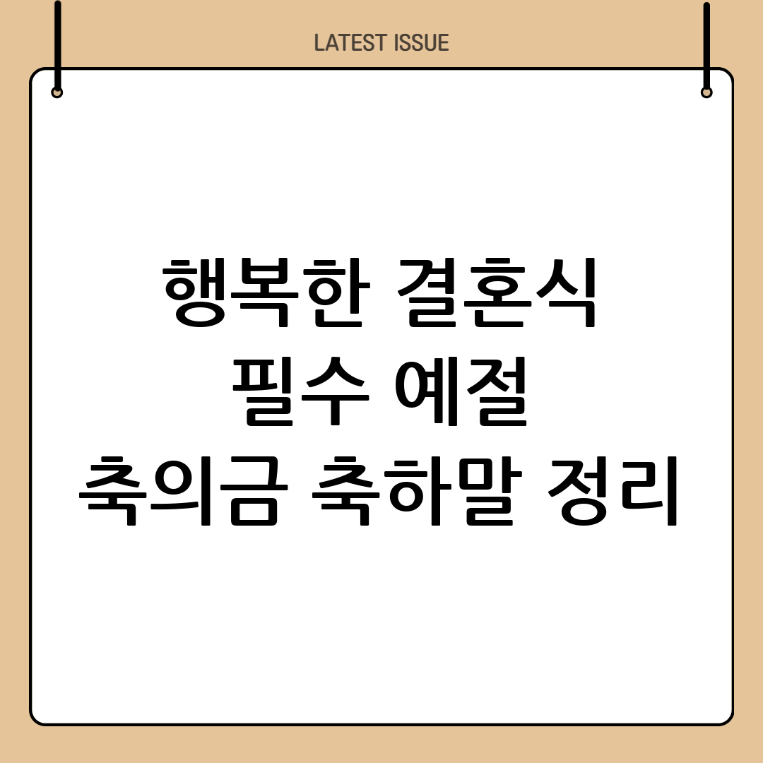 행복한 시작을 위한 필수 가이드: 결혼예절, 축의금, 축하말 완벽 정리 결혼은 두 사람이 하나 되는 성스러운 약속이자, 새로운 가정을 시작하는 …